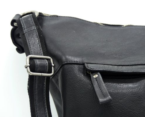 Die Ledertasche Emily begleitet die Dame zuverlässig. Ihre praktische Form, das weiche Leder und das geräumige Innere machen sie unverzichtbar. Diese Umhängetasche ist praktisch ein Muss. Das Hauptfach mit Reißverschluss ist komplett gefüttert und ausgestattet mit einem Handfach, einem Einsteckfach und einem Reißverschlussfach. Sogar DIN-A4-Formate wie z.B. Zeitschriften passen hier rein. An der äußeren Rückseite verbirgt sich ein zusätzliches Reißverschlussfach. Der Schultergurtlässt sich individuell verstell bis max. 145,0 cm verstellen. In Schwarz kann sie überall mit. Go with me, Emily!