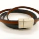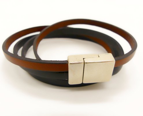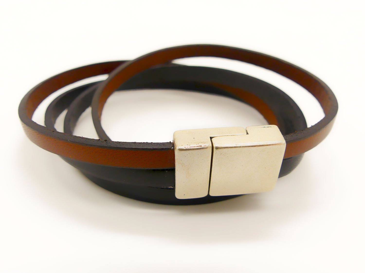 Dieses stylische Lederarmband komplettiert den lässigen Look perfekt. Durch die Farbkombination der schwarz/braunen Lederbänder passt es sich wunderbar an. Der hochwertige Magnetverschluss aus Edelstahl schmückt zusätzlich und sichert gekonnt. Ob für Herren oder Damen, als Partnerarmband oder Freundschaftsband, dieses Accessoire kann sich sehen lassen. Zweifach um das Handgelenk gewickelt und los. Handgefertigt aus echtem Leder.