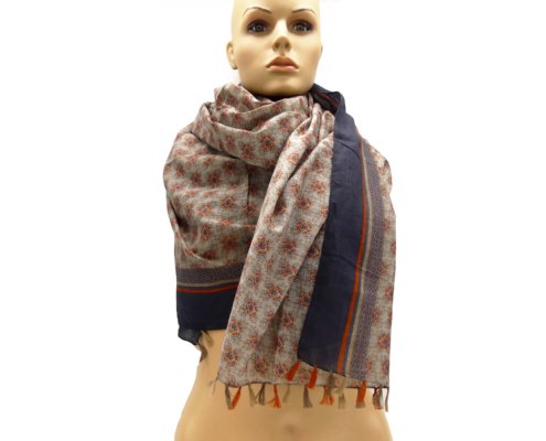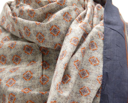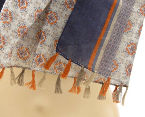 Antique gibt sich leicht und exklusiv. Das stimmige, kleinteilige Muster passt sich optisch unkompliziert an. Der Schal gibt das Gefühl von einem Hauch von Baumwolle. Die kurzen Fransen sind farblich abgestimmt. Ein Traum an Seite von Taschen in Cognac.