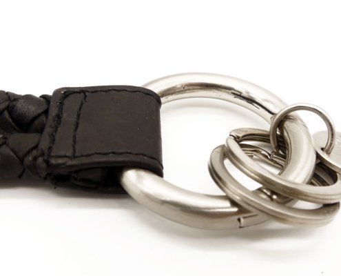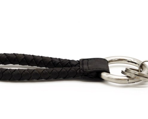 Mit Keyfinder findet man nicht nur verlässlich den Schlüssel, sondern trägt auch das elegante Accessoire zur schwarzen Tasche. Die geflochtene Schlaufe aus echtem Rindsleder ist praktisch im Einsatz. Der Hauptring aus gebürstetem Metall und die zusätzlichen Schlüsselringe bieten ausreichende Möglichkeiten zur Schlüsselsicherung. Keyfinder ist unerlässlich!